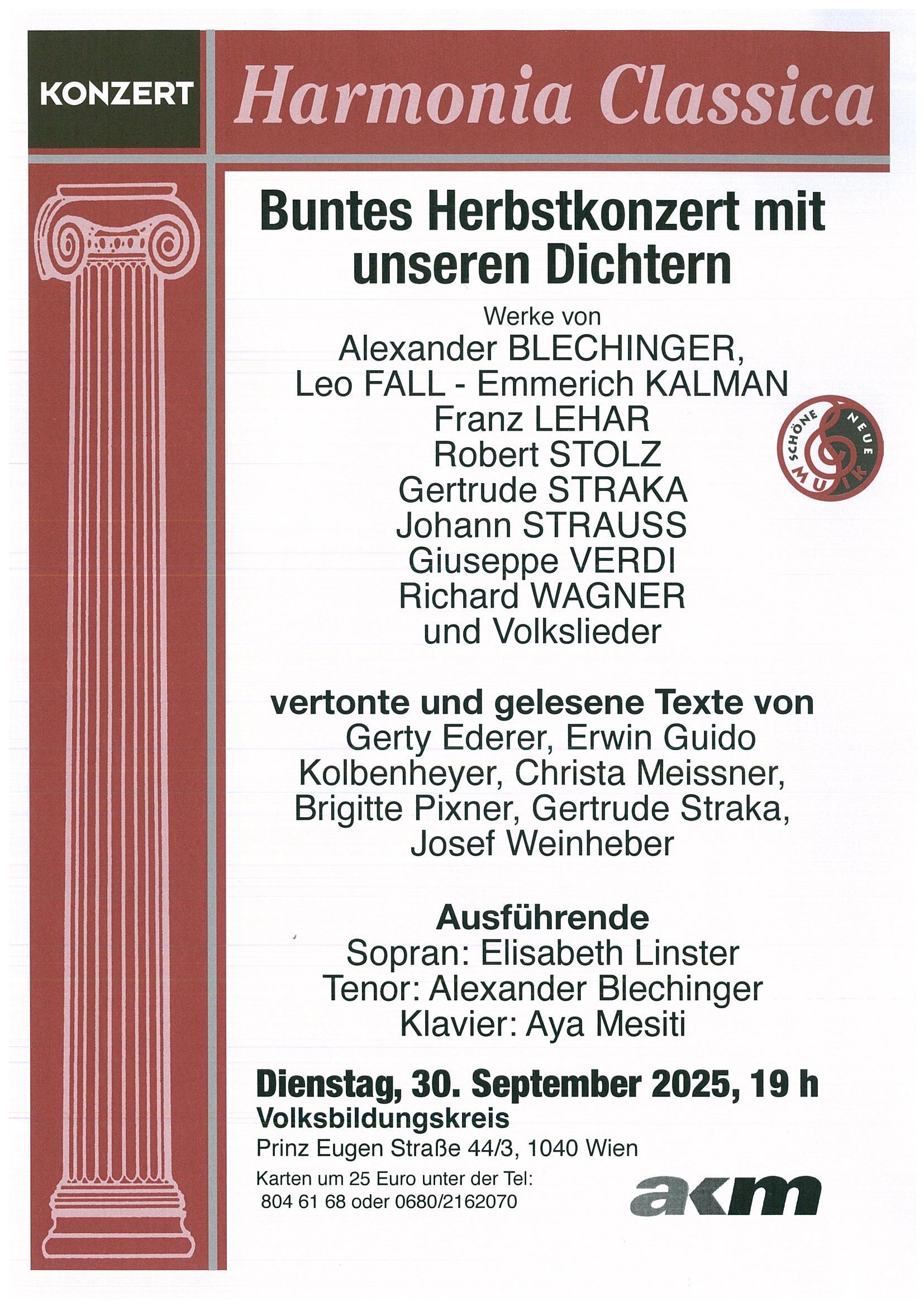 HARMONIA CLASSICA: Einladung zum „Bunten Herbstkonzert mit unseren Dichtern“